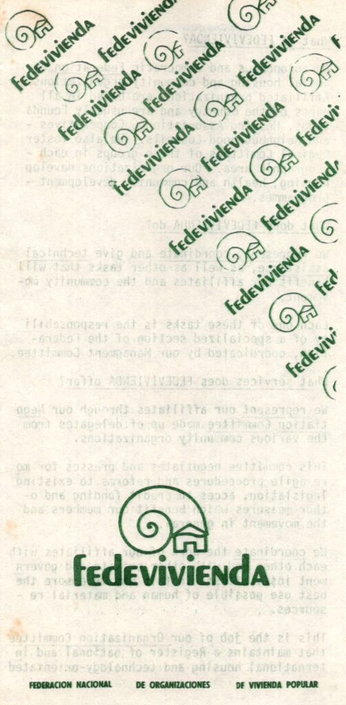 Below is a Fedevivienda brochure from September 1984 that describes the work being done by the group. Click the cover image to view the PDF or view-download here. [View-Download]